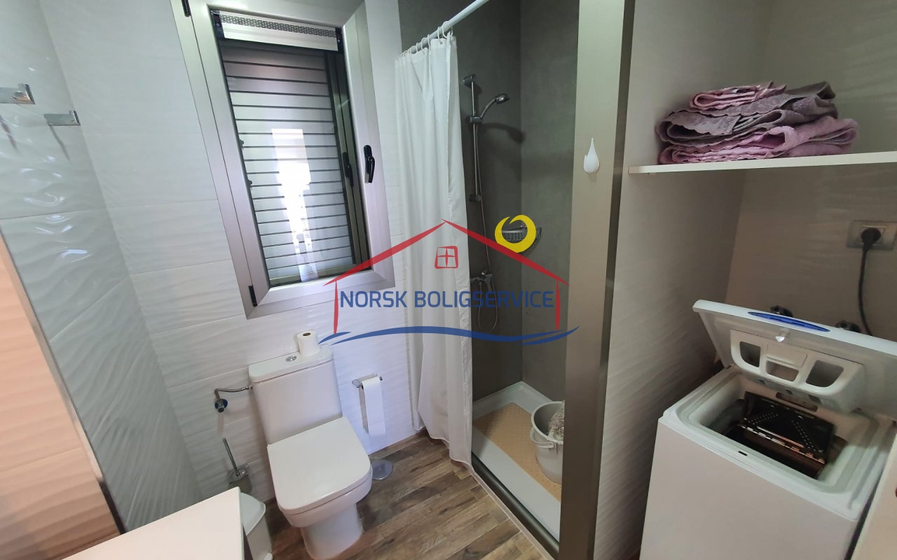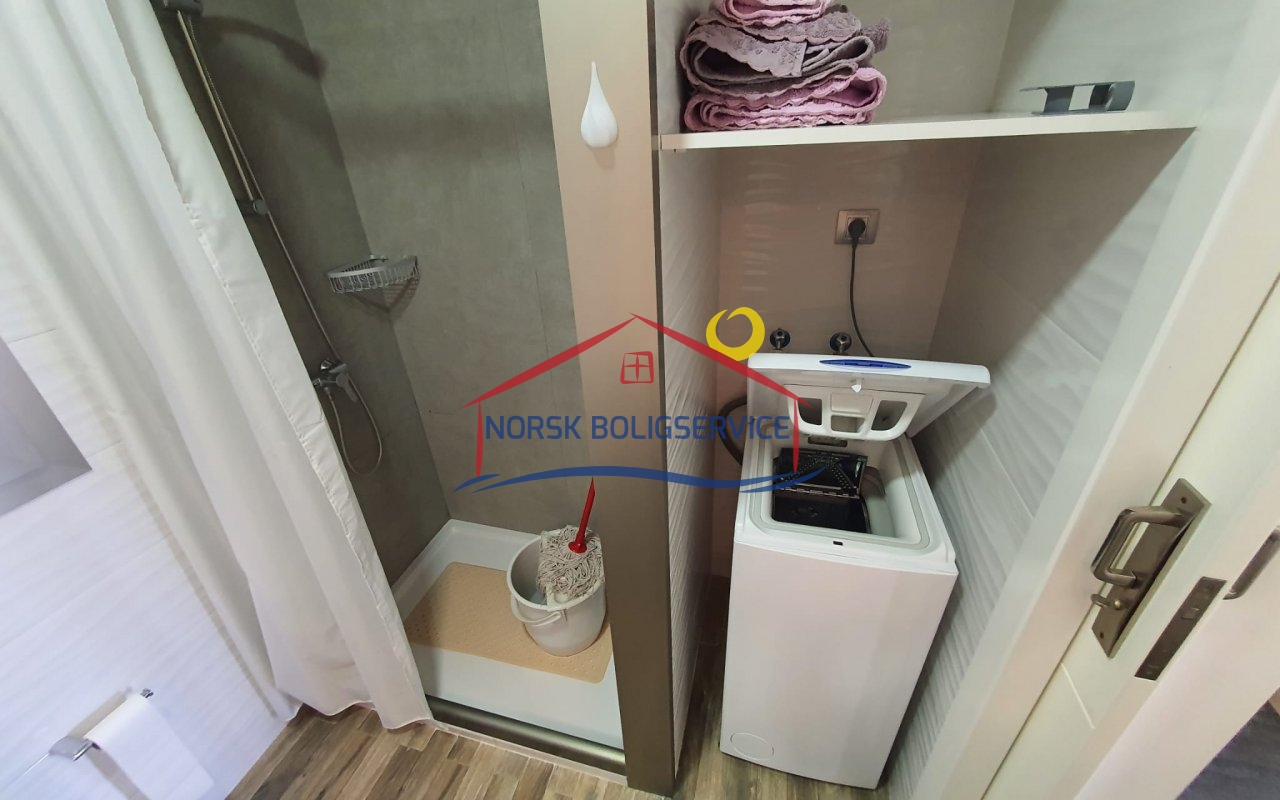 - Bad med dusj og vaskemaskin