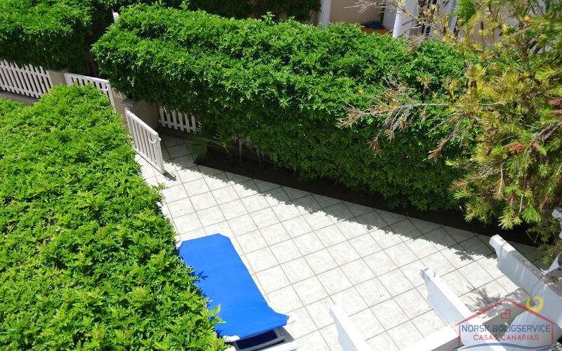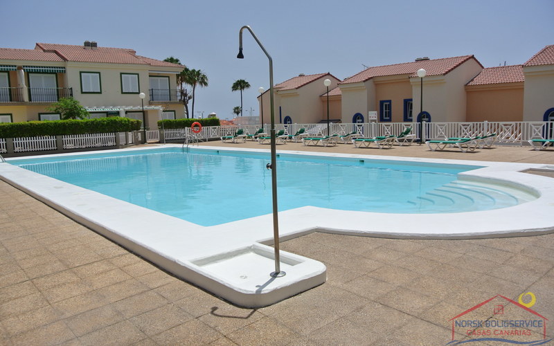 Tomannsbolig i Pasito Blanco, rolig område. 3 soverom, 3 bad og kjeller. Flott terrasse, felles basseng. Aircondition og parkeringsplass. Nær stranden.