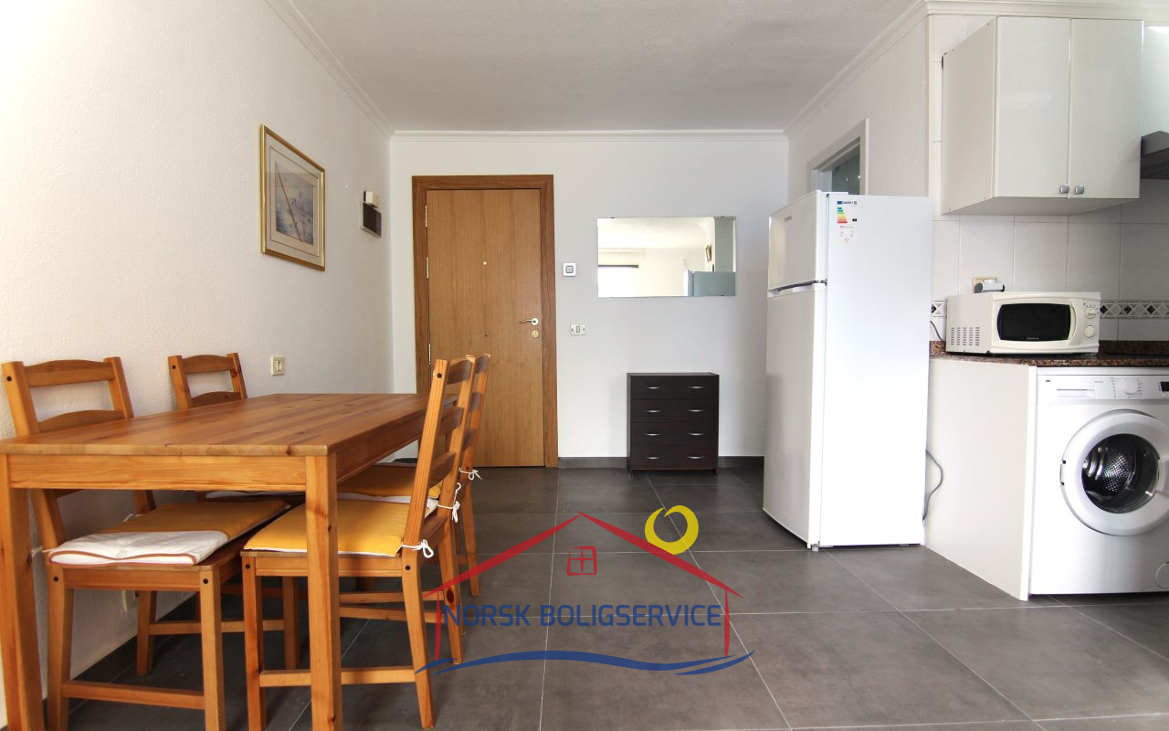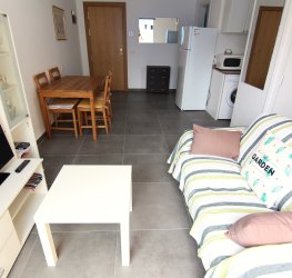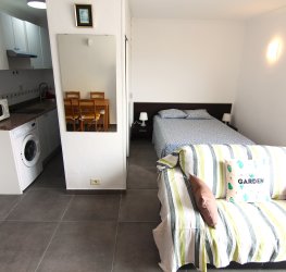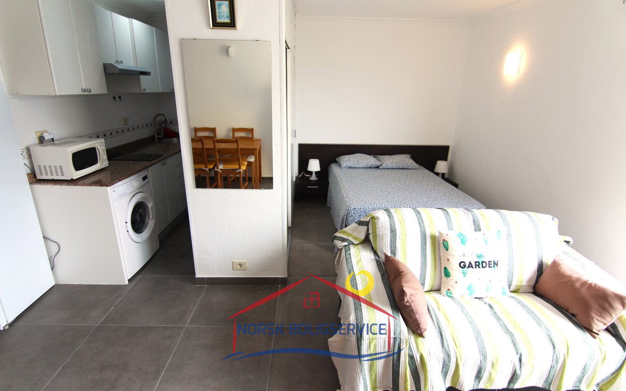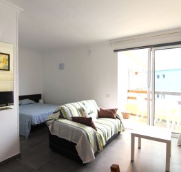 Furnished Studio for rent in Arguineguin, Gran Canaria. It is located in the center of town which allows easy access to supermarkets, shops, and other public services. The building has a double elevator that takes you practically to the same beach which is located right in front. Taxi and bus stop about 300 meters walking. Pets are not allowed, Internet is not included in the price. The costs of water and electricity up to 50 Euros. Ideal for single person or couple too.
