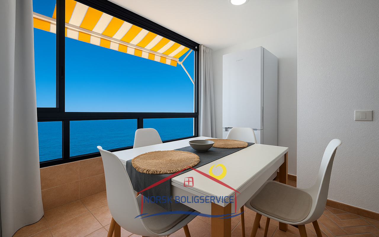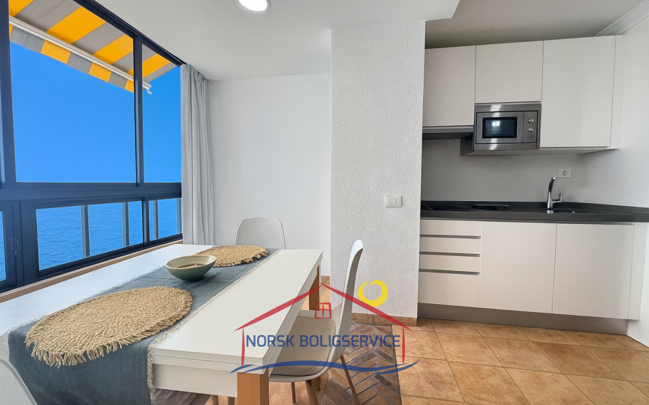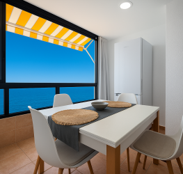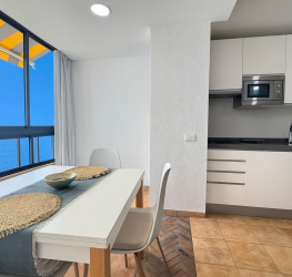 Kitchen – dining area. This is the space where you will want to spend most of your time, with beautiful sea views and plenty of natural light. It has a compact kitchen, perfect for those who don’t cook much.