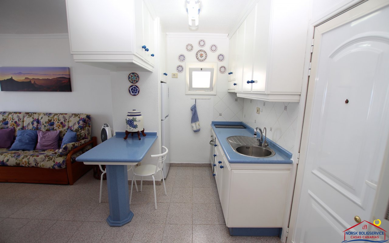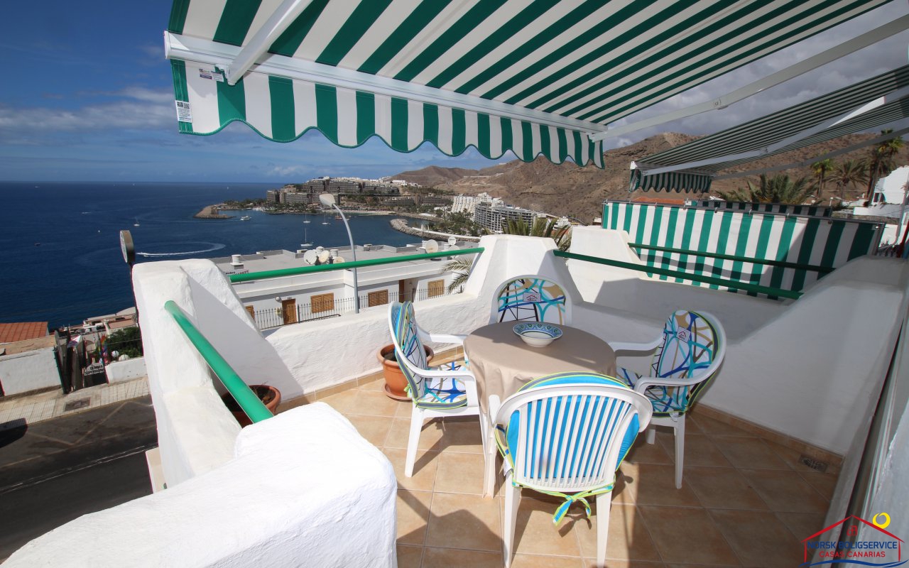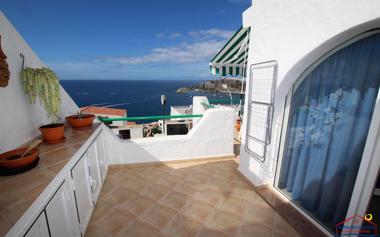 Fint 1 soveroms leilighet i Patalavaca med flott solrik terrasse og havutsikt, fellesbasseng.Rolig område.