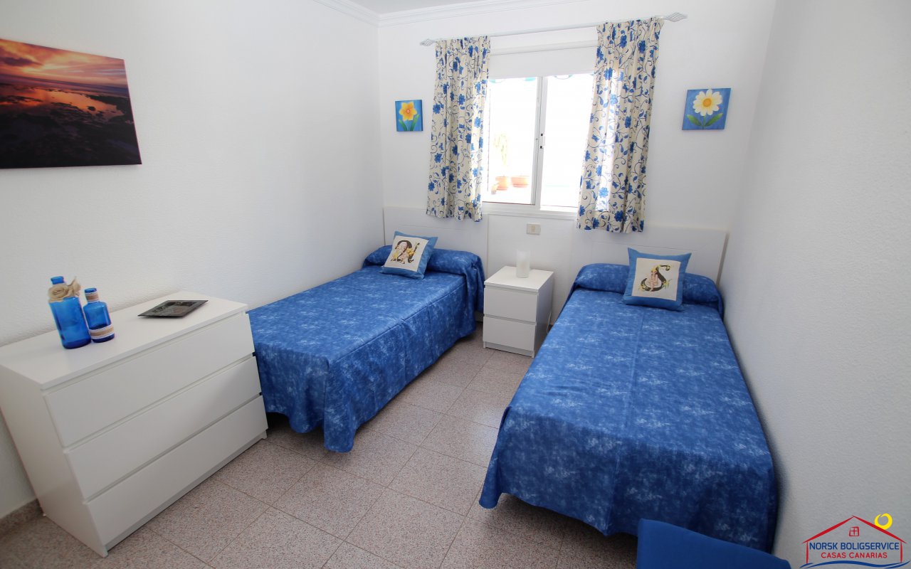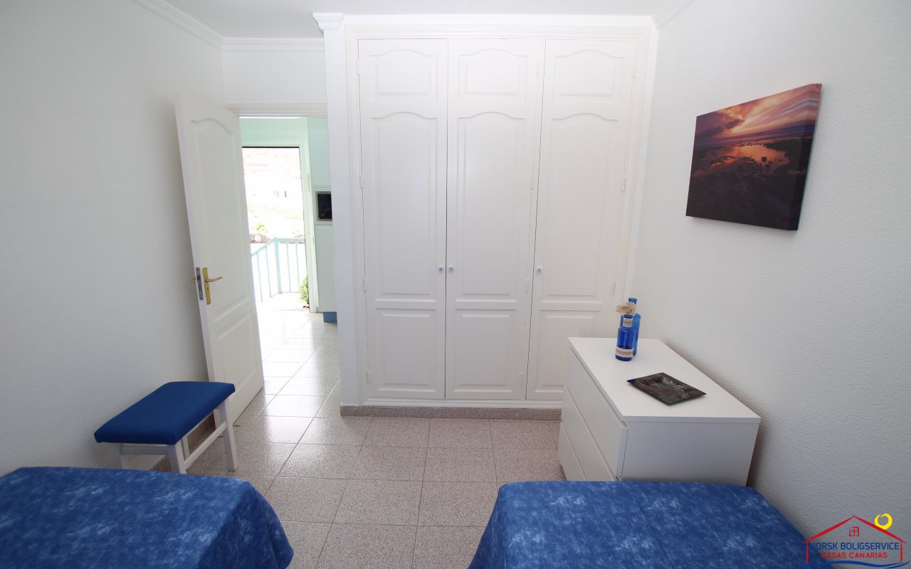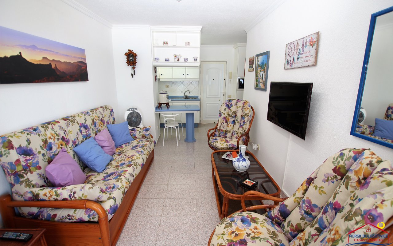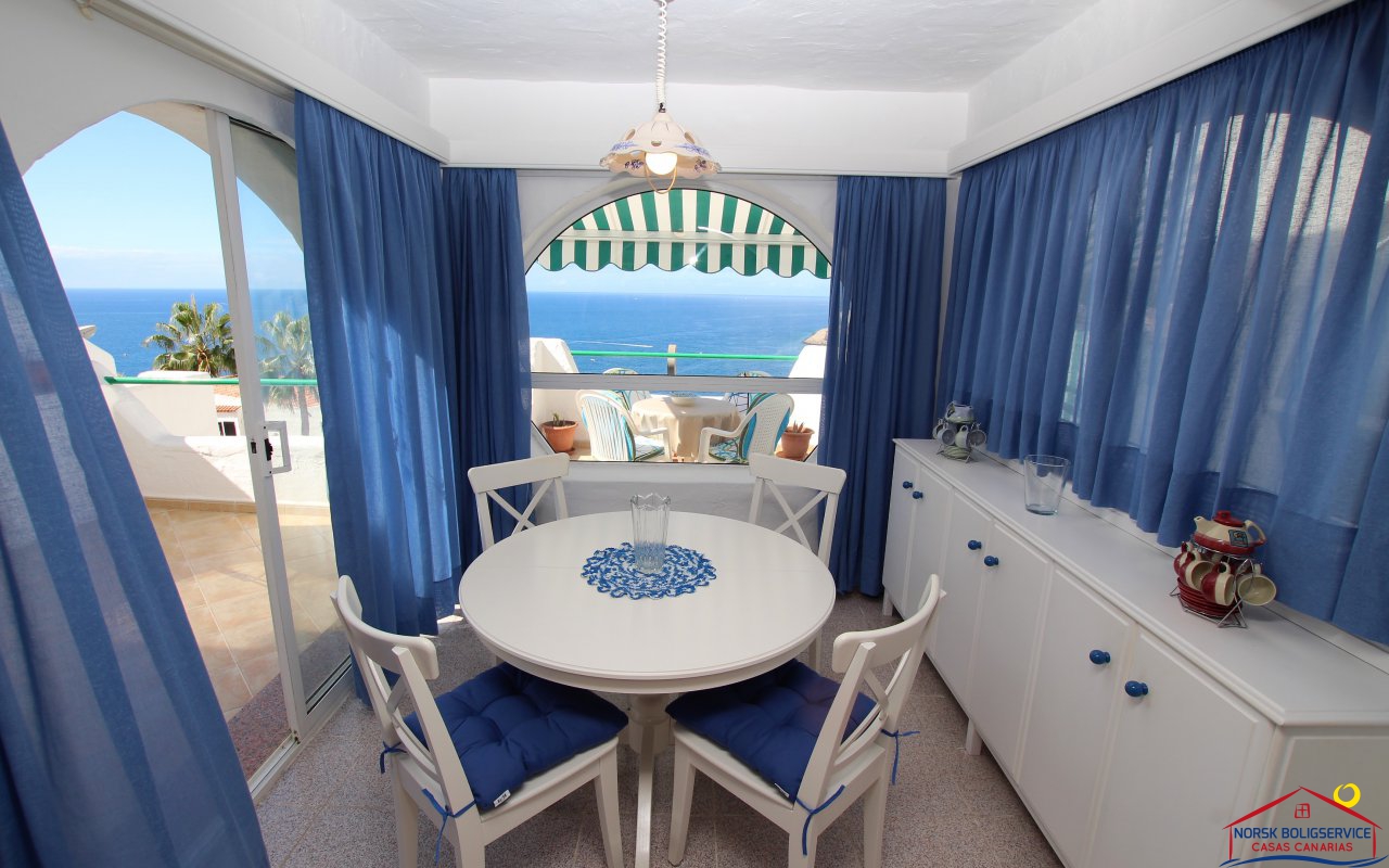 Fint 1 soveroms leilighet i Patalavaca med flott solrik terrasse og havutsikt, fellesbasseng.Rolig område.