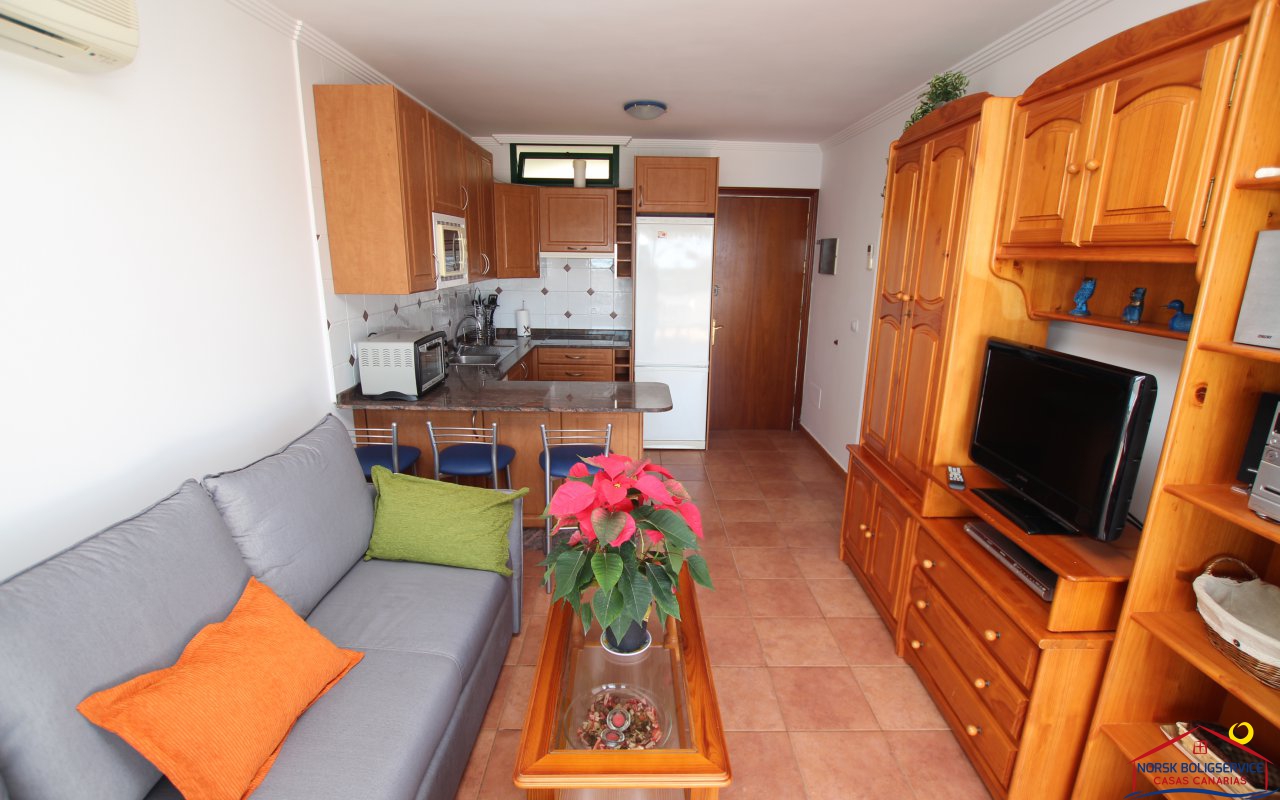 Fin toppleilighet i øvre del av Puerto Rico. Stor solrik terrasse. Supermarked i nærheten. Renovert.Har Aircondition.