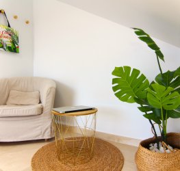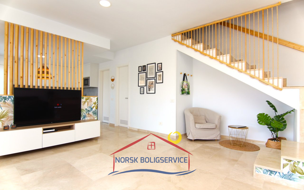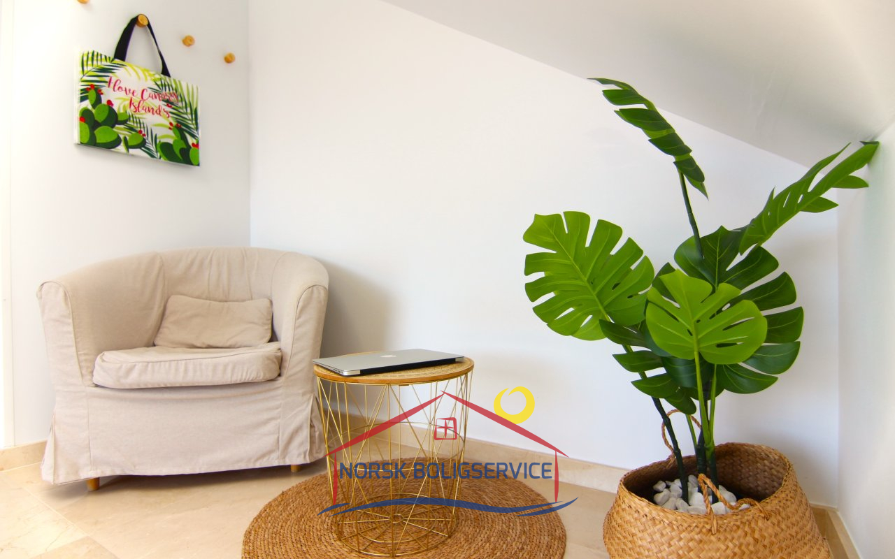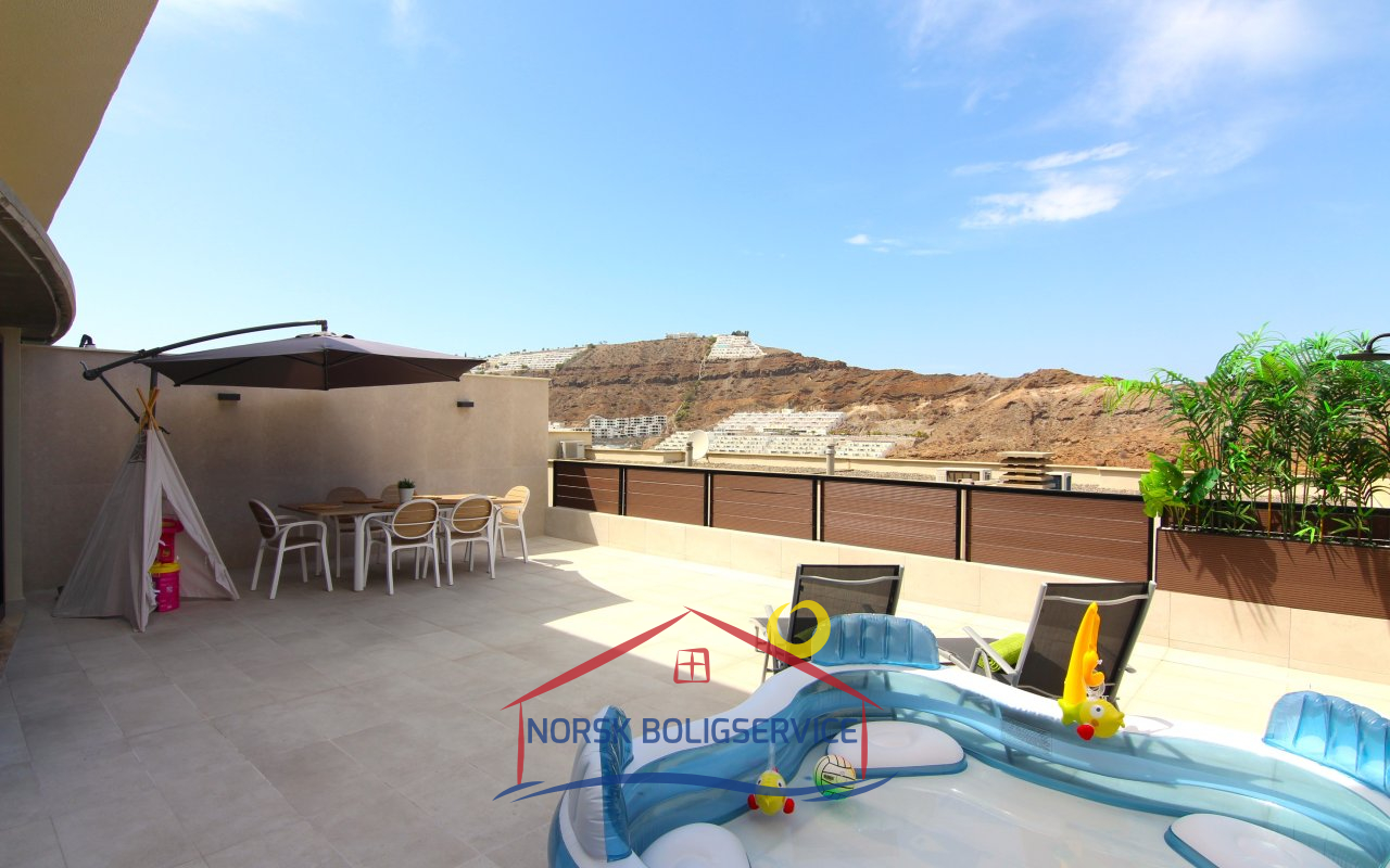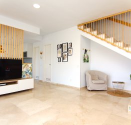 Se trata de un duplex amplio de dos plantas y que tiene unas vistas preciosas al valle de Puerto Rico. Su diseño es cómodo y acogedor con un estilo moderno en tonos beige y blanco para mayor tranquilidad.