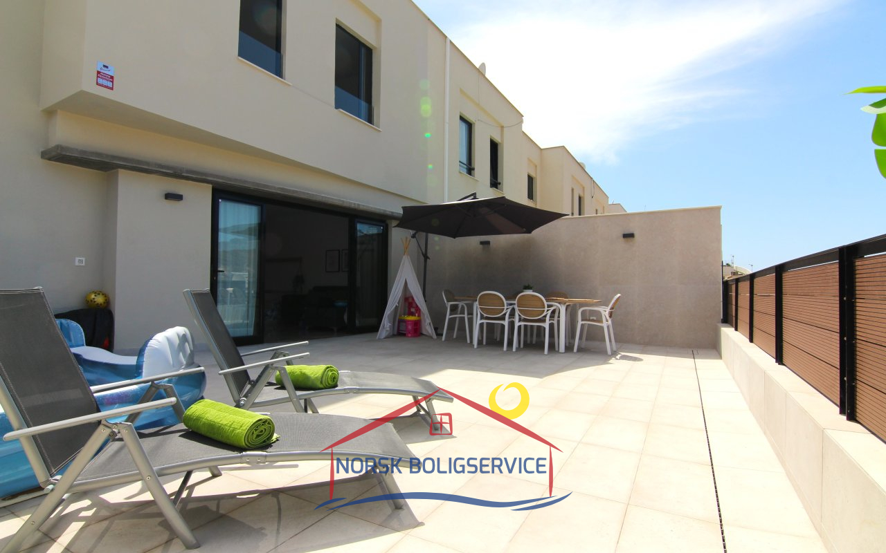 - Amplio salón con gran sofá con cheslong, sillón, TV y mueble para almacenar cosas. Internet con Wifi esta instalado. Tiene acceso directo a la terraza a través de 2 amplias puertas de cristal desde las que entra bastante luz natural. Está conectado a la cocina.