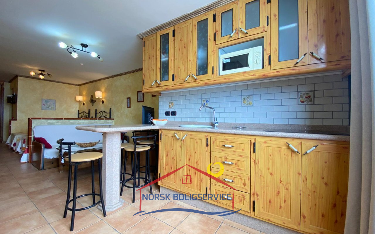 - Cocina - comedor. En esta estancia querrás pasar la mayor parte del tiempo, con unas vistas preciosas al mar y mucha luz. Cuenta con una cocina compacta perfecta para los menos cocinillas.