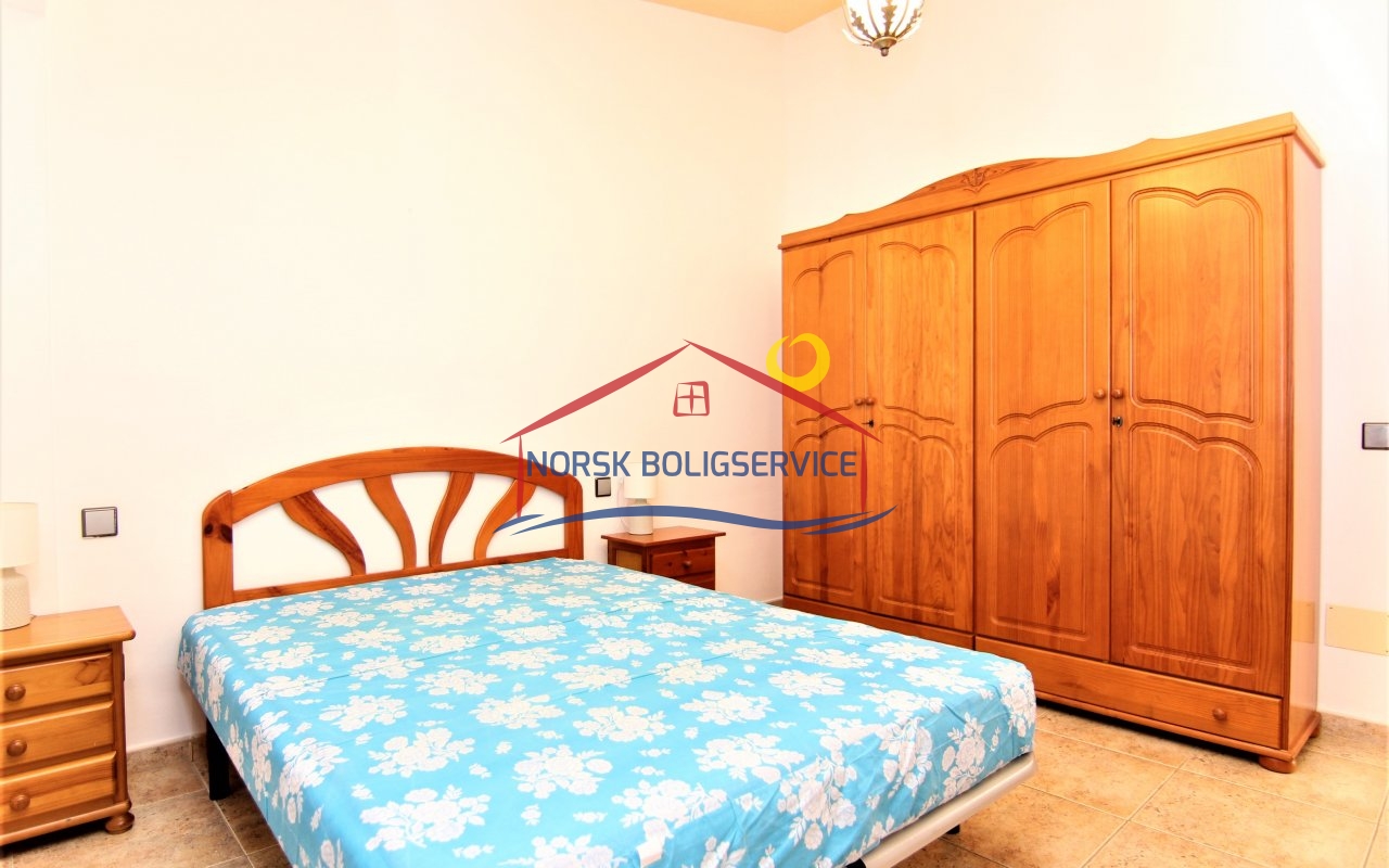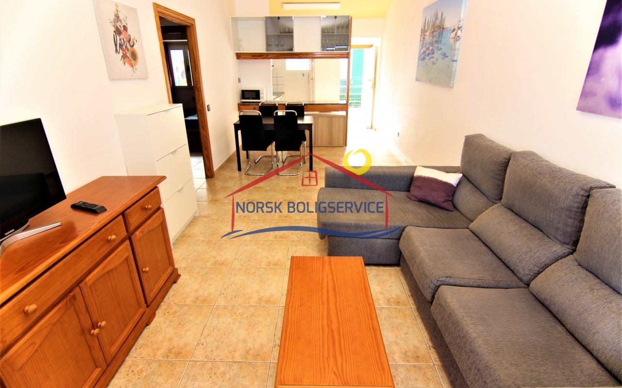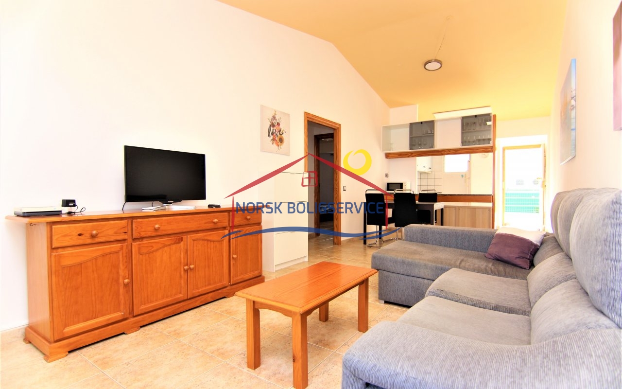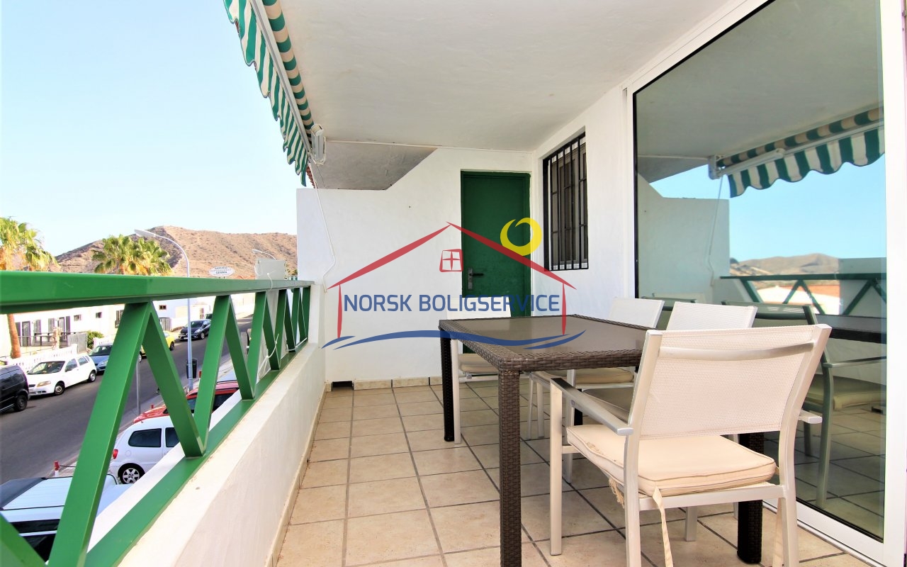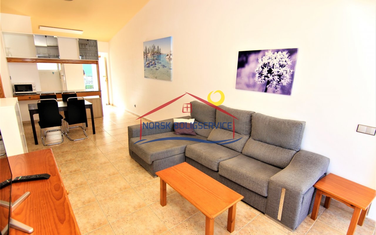 Fin 2-soveroms leilighet med flott terrasse i Patalavaca. Felles basseng. Rolig populært område.