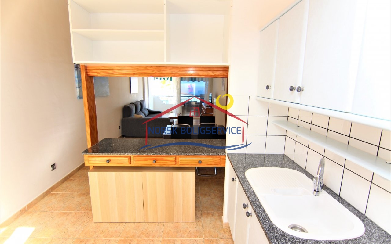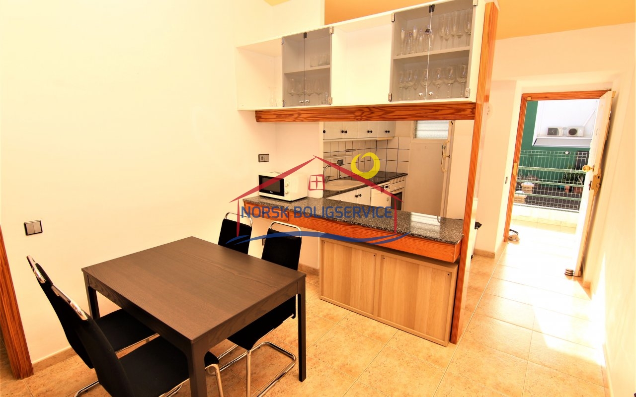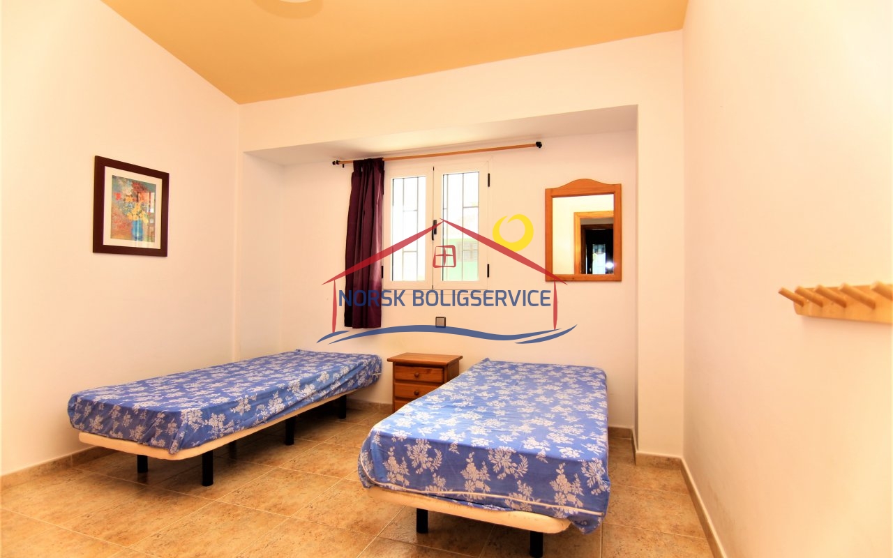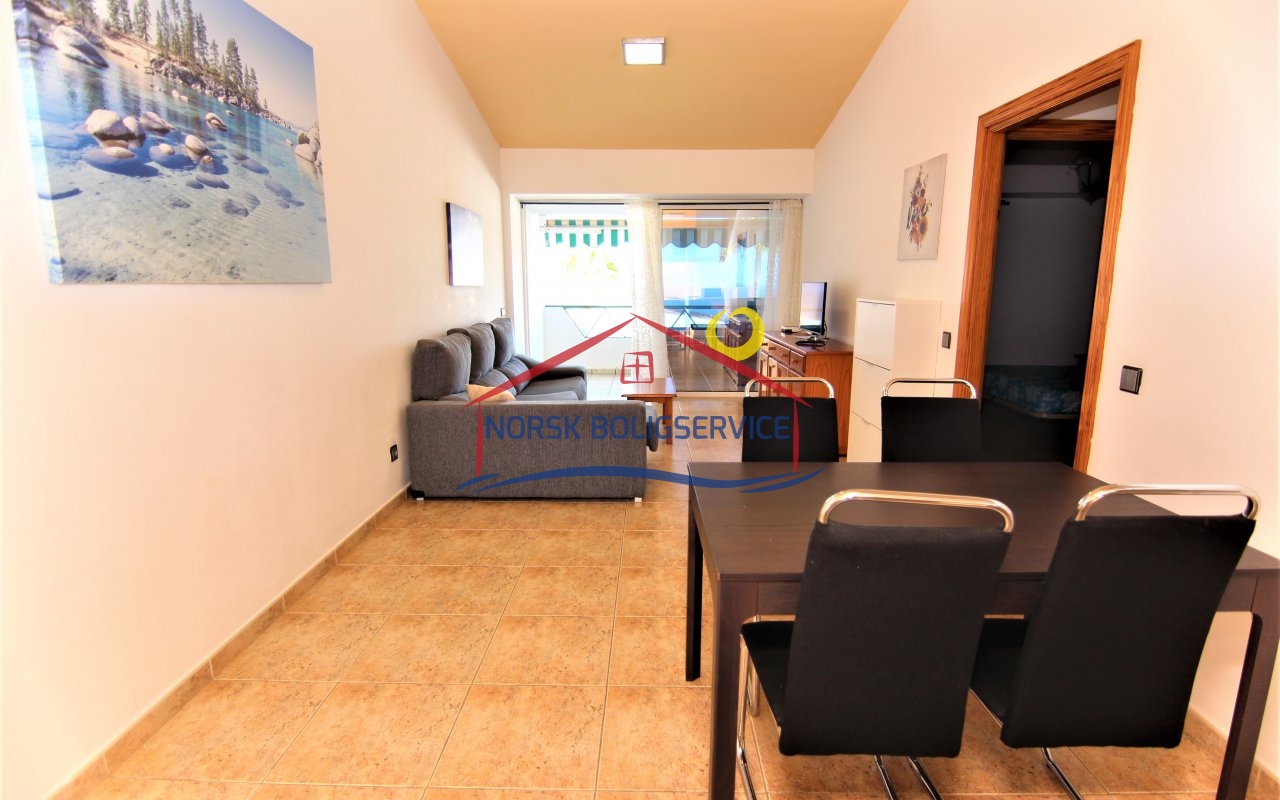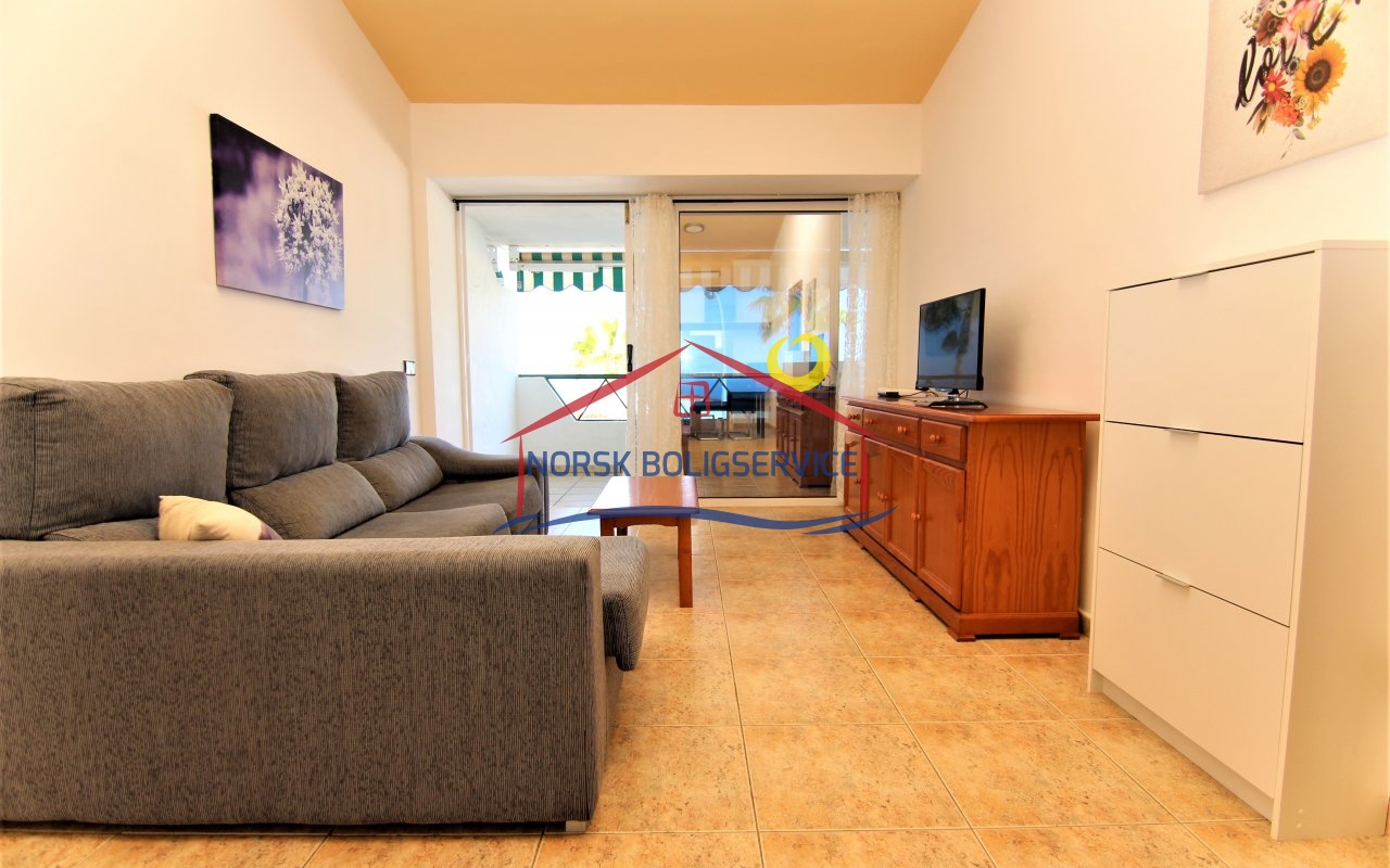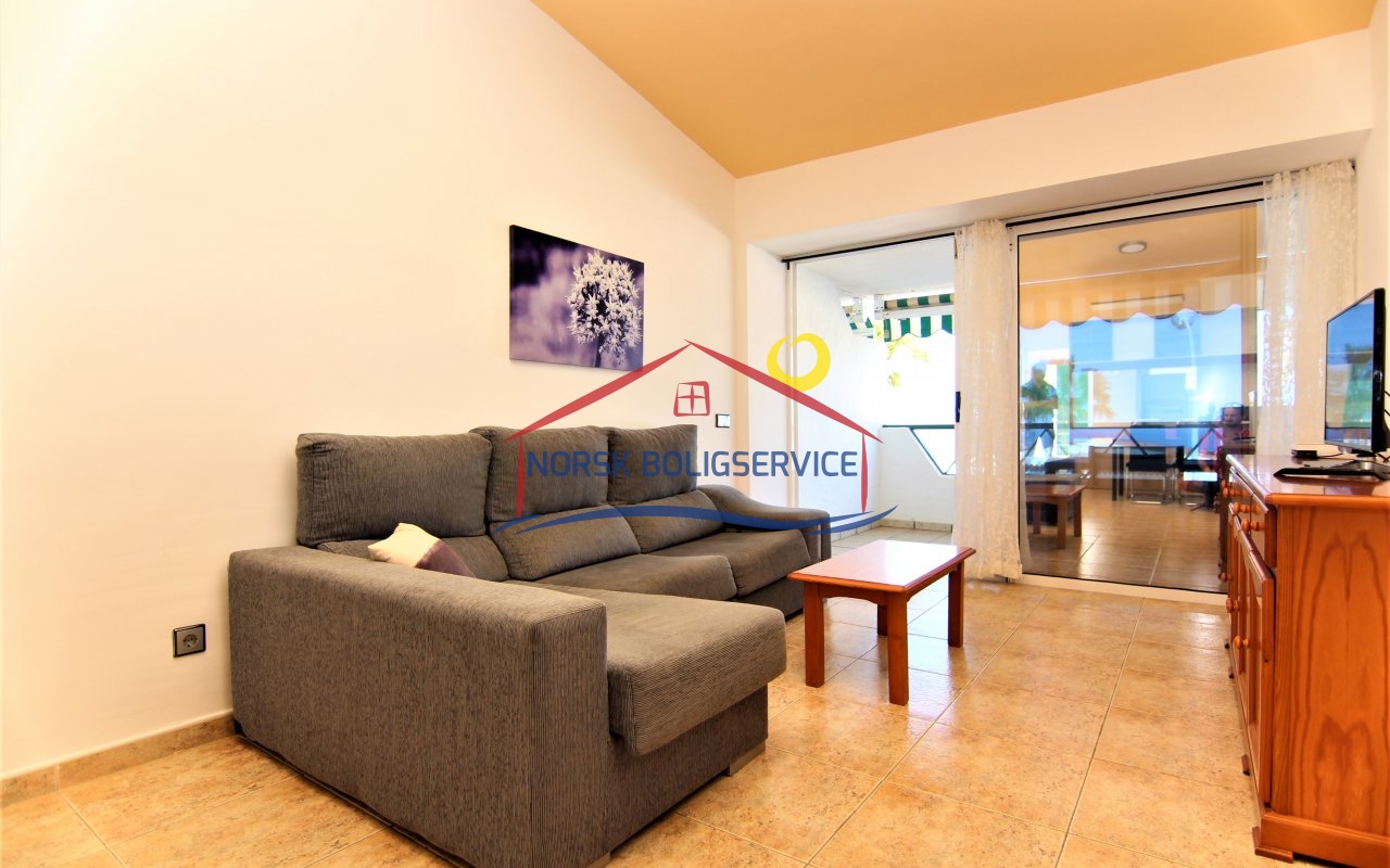 Fin 2-soveroms leilighet med flott terrasse i Patalavaca. Felles basseng. Rolig populært område.